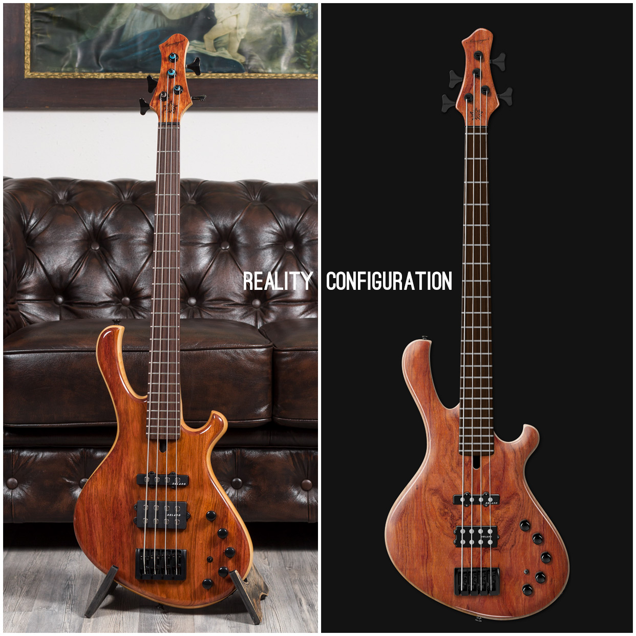 Der Erlekorpus wird mit dickem Ahorn belegt. Sie können ihn aber auch wahlweise mit Mahagoni Korpus und Ahorn Decke bestellen. Der angeschraubte Hals wird mit einem 24 bündigen Griffbrett aus Ahorn, Palisander oder Ebenholz bestückt. Wählen Sie zwischen Aktiv- und Passivelektronik mit Tonabnehmern jeglicher Art. Er ist als 4-, 5- und 6-Saiter verfügbar und kann als Bass oder als Piccolo Bass benutzt werden.