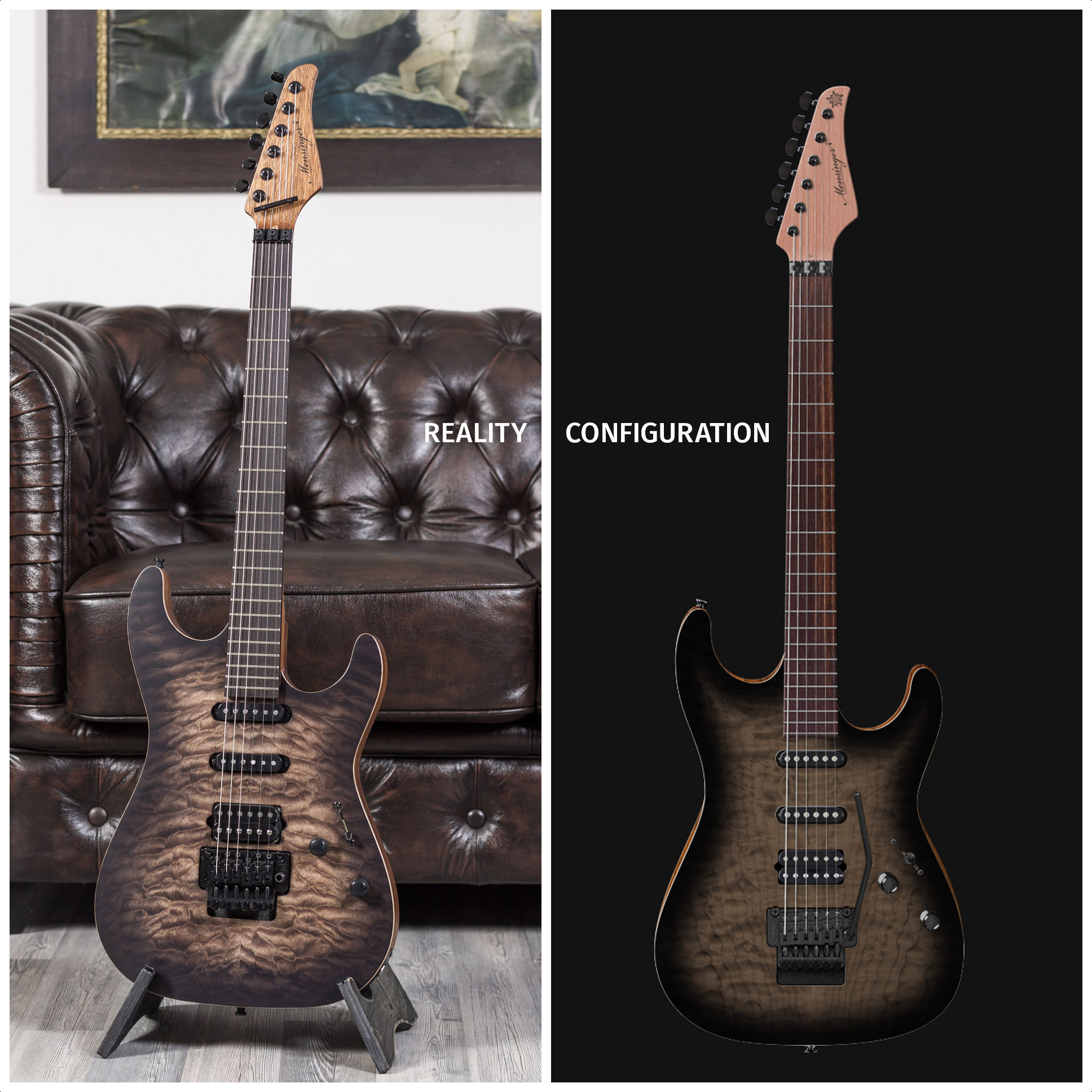 Im Gegensatz zur klassischen Variante wird die Elektronik direkt in den Korpus geschraubt, sodass kein Pickguard benötigt wird. Die Buchse befindet sich in der Zarge.