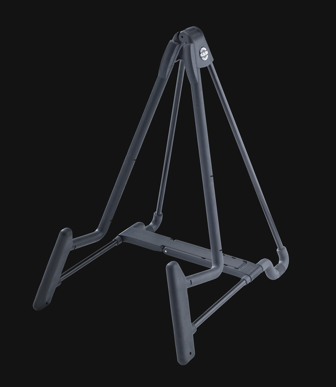 Der K&M Heli 2 ist der ideale Ständer für E-Gitarren. Robuste Stahlkonstruktion, gummierte Auflagen und verstellbare Breite sorgen für sicheren Halt – im Studio, auf der Bühne oder zu Hause.