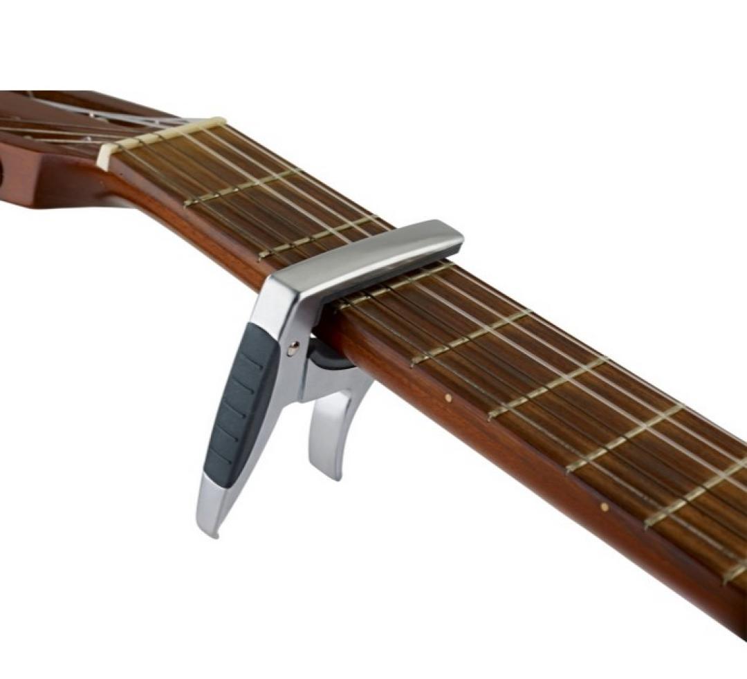 Professional capo for classical guitars with a straight fingerboard. The clamping mechanism can be operated quickly and easily with just one hand. Lightweight construction, matt chrome-plated. The rubber pad ensures that the capo sits firmly on the fingerboard and does not slip.